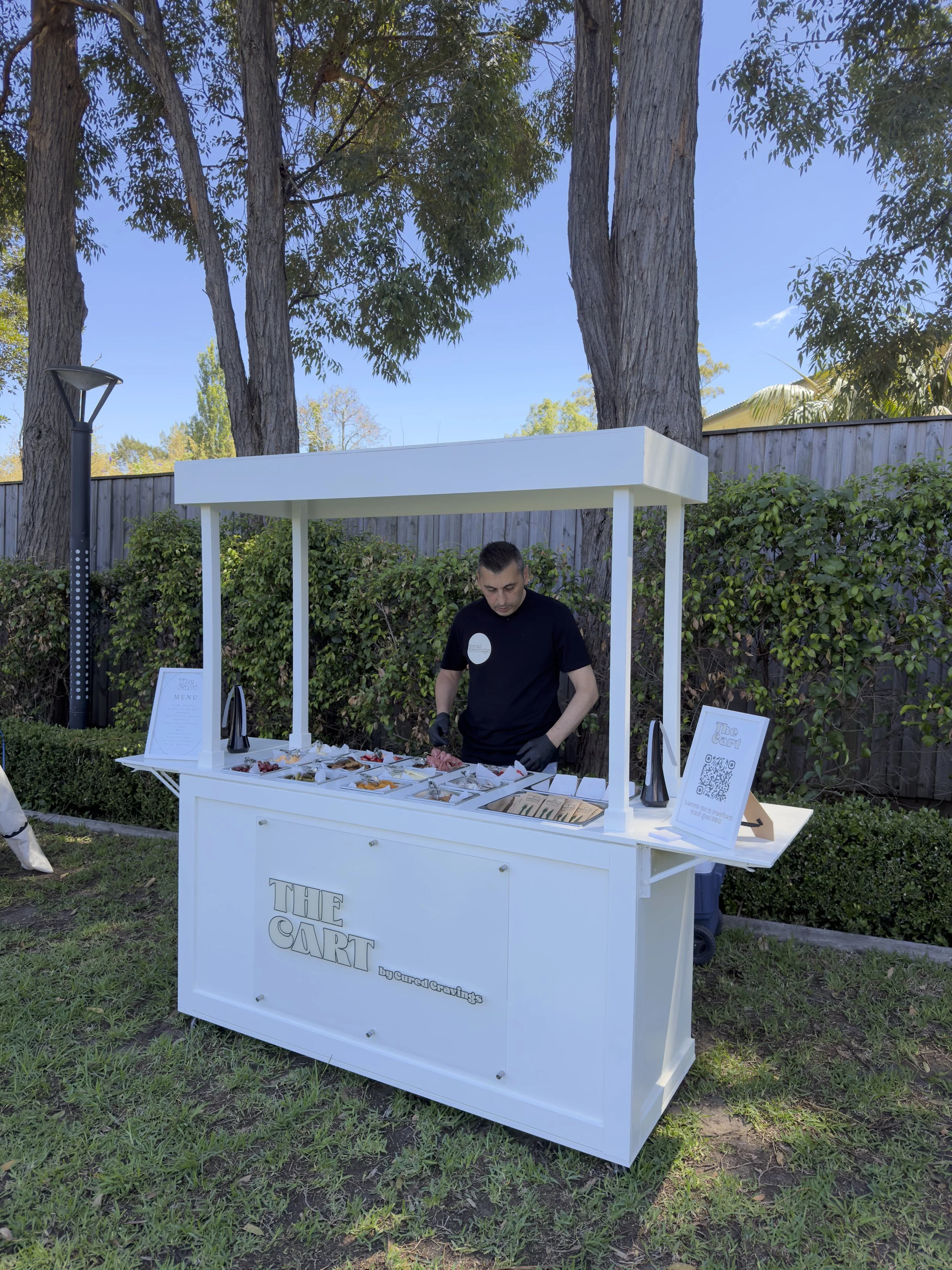 The cart can be styled to suit gatherings of any size, from intimate celebrations to large-scale events. A minimum booking of 25 guests applies, ensuring an abundant and beautifully curated display.
